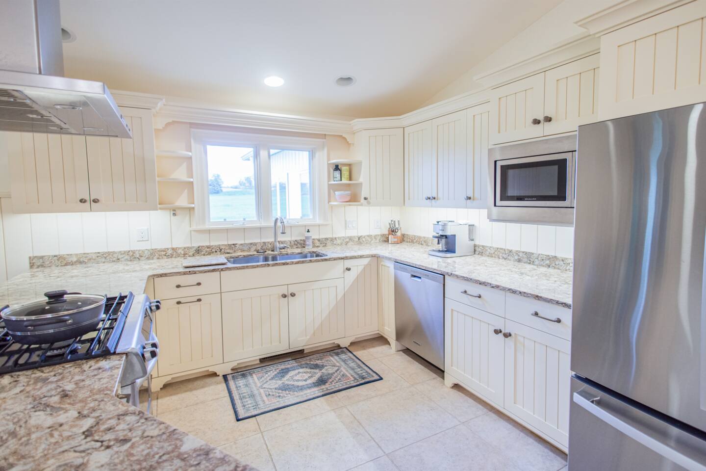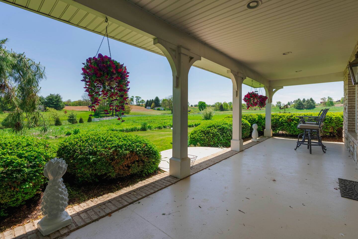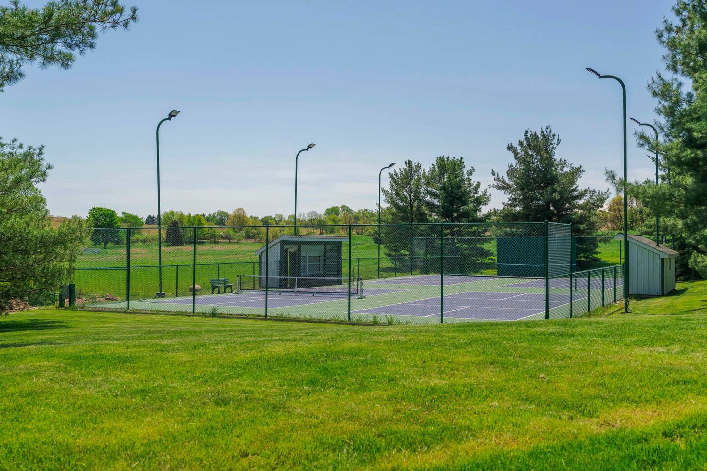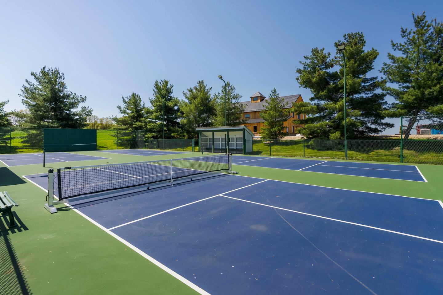 Once the beloved country cottage of the Smucker family (yes, the jelly makers!), this charming 4-bedroom, 1.5-bathroom home is set on 50 acres of stunning Ohio farmland. The property offers a completely private and secluded retreat yet is just minutes away from local amenities. Enjoy a top-notch tennis and pickleball court with lights for evening play, a bocce court, or indulge in the 40'x30' recreational room. This entertainment haven includes a big-screen TV, a stage for a band or DJ, space for a dance floor or cocktail tables, numerous pinball games, skee ball, a pool table, air hockey, and an attached screened-in porch. The home comfortably sleeps 10 guests, with accommodations including a king-size bed, two queen beds, a bunk bed, and a pull-out couch in the living room. Each bedroom has individual climate control, and the primary bedroom boasts an attached bathroom. The house features 1.5 bathrooms, with the full bathroom including a bathtub. Guests can make use of the washer and dryer, and there is ample free parking available on the gravel driveway. The full-size kitchen is fully equipped with all the essentials, including pots, pans, a baking sheet, and utensils. Modern appliances include a traditional coffee maker, gas stove, refrigerator, freezer, microwave, dishwasher, and toaster. For outdoor cooking, there's a gas grill ready for a BBQ. Outside, enjoy the property's bikes, fire pit, and outdoor dining area. Relax in the 6-person hot tub in the evenings. Surrounded by wildflowers that bloom from spring to fall and featuring a front porch swing overlooking a serene 3-acre lake, this property is a truly unforgettable retreat. Pets are welcome, with a limit of three. Our property has high speed internet wi-fi, Cable TV and good cell service. Once you research the area, you will see all the outdoor activities available within minutes from your doorstep. Canoeing, kayaking, trails, bird watching, Clays Water park, world class target ranges, and Amish country is just 20 minutes South. (Please drive safely due to Amish buggies). Sports Fans of all ages will enjoy Sluggers & Putters, which is also just minutes away in the Quaint town of Canal Fulton. The Canal Fulton Canoe Livery has canoes and kayaks available for rent and will pick you up later at multiple locations downstream. Stop at Clay's Park (Jellystone Water Park Resort), where you can find an Aqua Park that has water slides, swimming and splash grounds, gem mining and more. We have an ADT system set up with 4 exterior cameras that are on each corner of the home. They face the yard around the home and the driveway area. They can be covered per request. These devices are capable of recording.